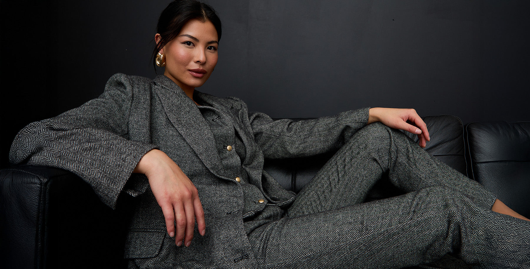 PREORDER - Jakki Tailored Herringbone Coat In Grey
