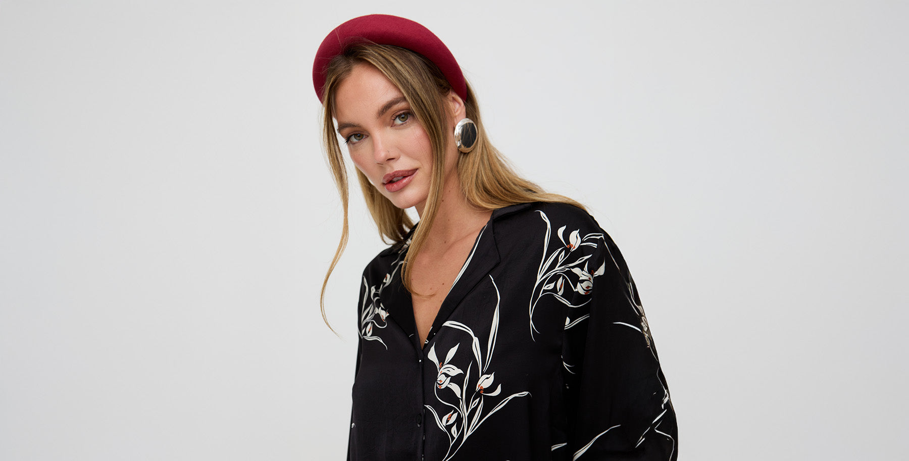 Lillibet Wide Leg Large Floral Print Trouser In Black