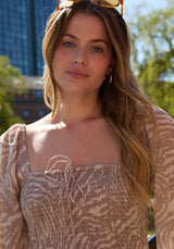 Lauren Shirred Bodice Banana Print Midi Dress In Brown